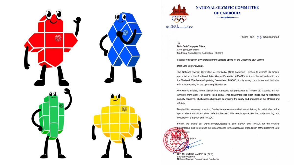គណៈកម្មាធិការជាតិអូឡាំពិកកម្ពុជា និងក្រសួងអប់រំ យុវជន និងកីឡា បានសម្រេចជាផ្លូវការកាត់បន្ថយចំនួនប្រតិភូ និងអត្តពលិកចូលរួមព្រឹត្តិការណ៍កីឡាអាស៊ីអាគ្នេយ៍ ឆ្នាំ២០២៥ នៅប្រទេសថៃក្នុងខែធ្នូ ខាងមុខ មកត្រឹម១៥០នាក់ និង១៣ប្រភេទកីឡា ពោលថយចុះពី៣៣៣នាក់ និង២១ប្រភេទកីឡា។