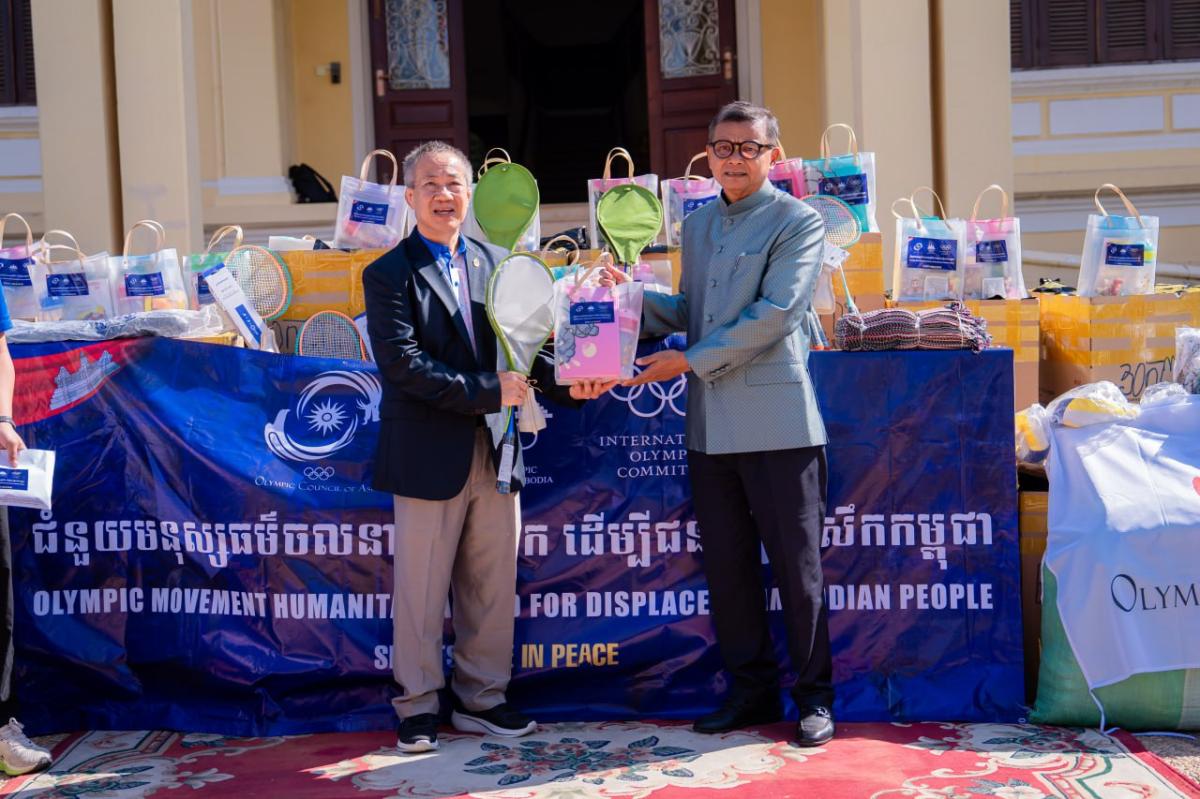 H.E. Vath Chamroeun, Secretary of State for the Ministry of Education, Youth and Sports and Secretary General of the National Olympic Committee of Cambodia, said that: “On behalf of H.E. Dr. Thong Khon, President of the National Olympic Committee of Cambodia, who has received the charitable aid from the Olympic Movement of the International Olympic Committee and the Olympic Council of Asia, and more aid has been provided to the Ministry of Education, Youth and Sports and has been warmly welcomed by H.E. Dr. Hang Chuon Naron, Deputy Prime Minister and Minister of Education, Youth and Sports, who has appealed for aid to help teachers, students and other refugees of war.This aid is a symbol of the Olympic Movement’s support for the refugees, students and fleeing children to have opportunities to play sports and study.