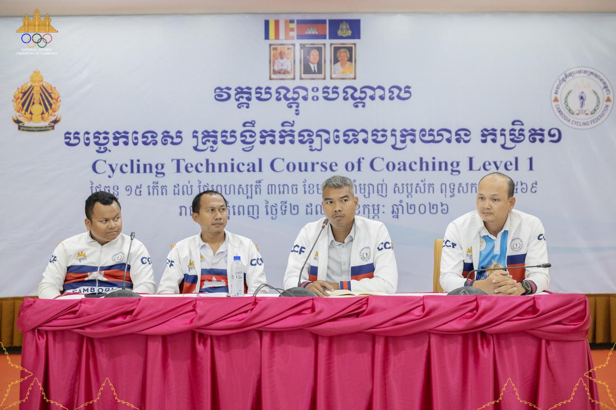 Phnom Penh: The Cycling Federation of Cambodia, under the budget support project of the Ministry of Education, Youth and Sports and the strategic plan of H.E. Pan Sorsak, President of the Cycling Federation of Cambodia, to further develop human resources in the cycling sector, opened the Level 1 technical training course for cycling coaches from February 2 to 5, 2026 at the National Olympic Committee of Cambodia.