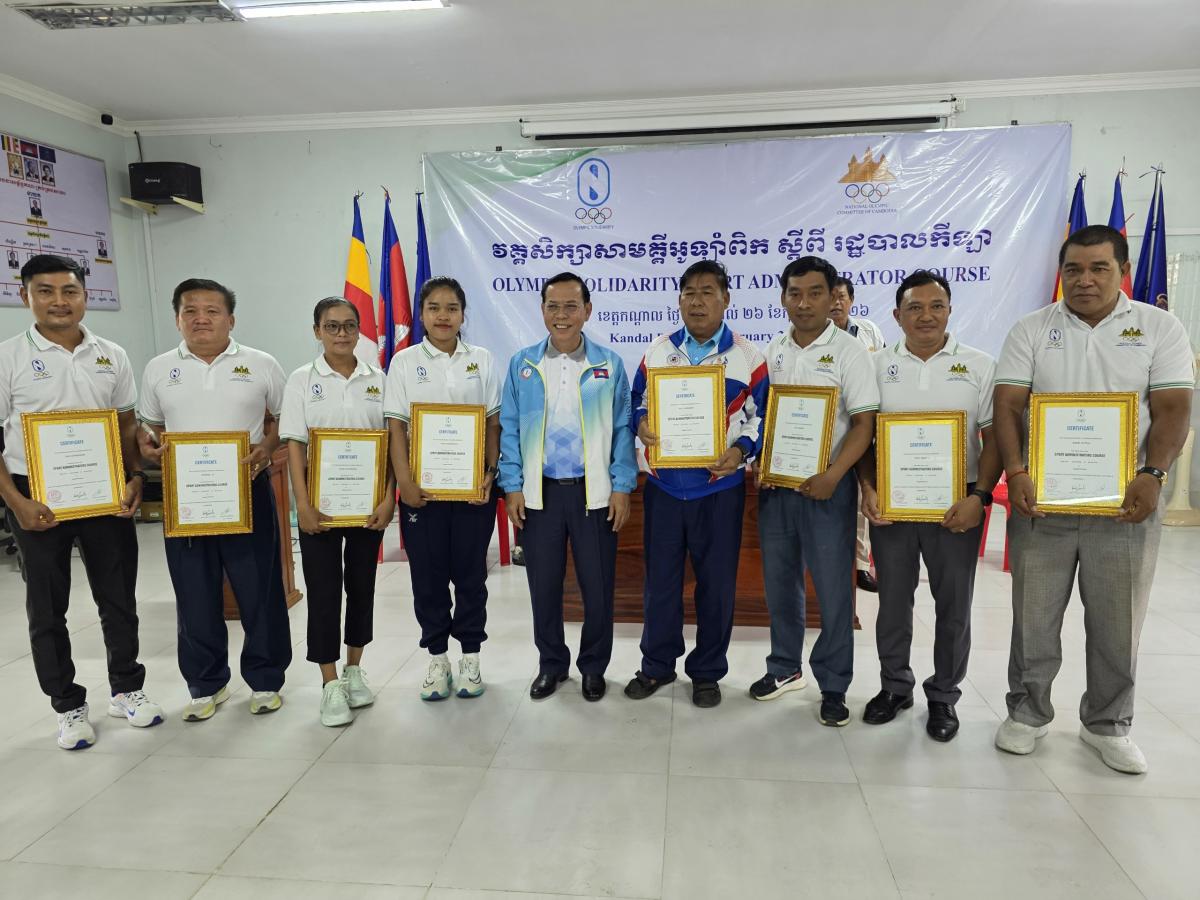 The Olympic Solidarity Course on Sports Administration in 2026, which held at the Hun Sen Takhmao High School from February 23 to 26, has concluded with 10 participants out of 24 participants receiving grades A, 11 participants received grades B, 2 participants received grades C, and one participant received grade D.