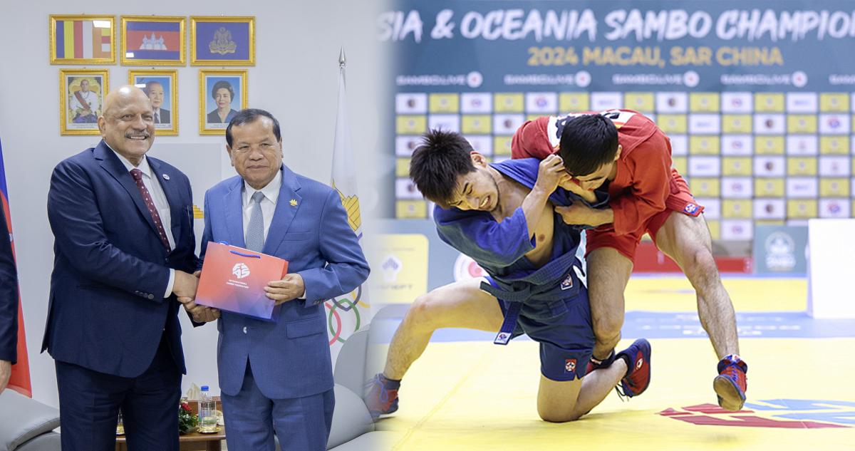 ឯកឧត្តមបណ្ឌិត ថោង ខុន ទេសរដ្ឋមន្ដ្រីទទួលបន្ទុកបេសកកម្មពិសេស និងជាប្រធានគណៈកម្មាធិការជាតិអូឡាំពិកកម្ពុជា(NOCC) និងលោក Suresh Gopi អគ្គលេខាធិការសហភាពកីឡាសាំបូអាស៊ី និងអូសេអានី(SUAO) តំណាងសហព័ន្ធកីឡាសាំបូអន្ដរជាតិ(FIAS) បានបង្ហាញឆន្ទៈ និងការប្ដេជ្ញាចិត្តរួមគ្នា ក្នុងការគាំទ្រ និងជំរុញការអភិវឌ្ឍវិស័យកីឡាសាំបូនៅកម្ពុជាឲ្យរីកចម្រើន ប្រកបដោយគុណផលខ្ពស់ ឆ្ពោះទៅរកការប្រកួតប្រជែងលើឆាកអន្ដរជាតិ។