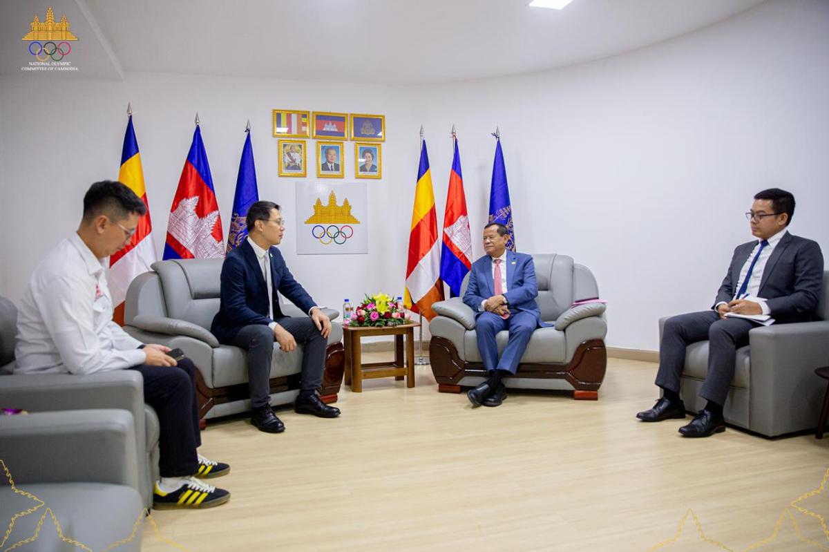 (ភ្នំពេញ)៖ នាព្រឹកថ្ងៃទី ២២ ខែកក្កដា នេះលោក Sean Chi-Hsiang Weng ប្រធានសហព័ន្ធកីឡា WOODBALL អន្តរជាតិ IWbF និងលោក Aang Sunadji ប្រធានសហព័ន្ធ WOODBALL ឥណ្ឌូនេស៊ី បានអញ្ជើញចូលជួបសម្តែងការគួរសមជាមួយនឹង ឯកឧត្តមបណ្ឌិត ទេសរដ្ឋមន្ត្រី ថោង ខុន ប្រធានគណៈកម្មាធិការជាតិអូឡាំពិកកម្ពុជា(NOCC) ក្នុងគោលបំណងផ្លាស់ប្ដូរគំនិត រវាង IWbF និង NOCC លើគម្រោងឈានទៅបង្កើតសហព័ន្ធជាតិ និងធ្វើការអភិវឌ្ឍត្រៀមចូលរួមការប្រកួតអន្ដរជាតិនានា។